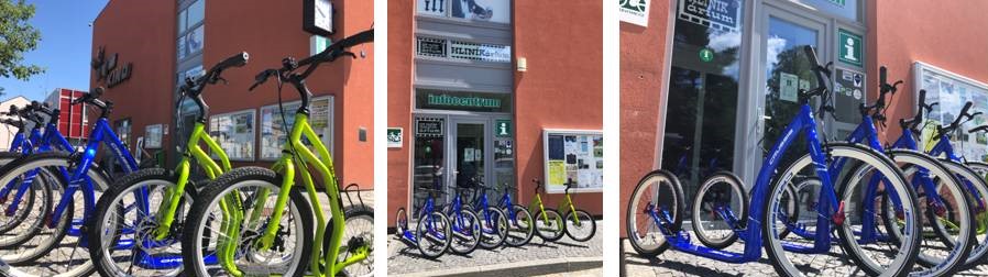 V našem infocentru od loňské sezony půjčujeme koloběžky. Čekají na vás 4 extra lehké krasavice Crussis Cobra a 2 bytelní Yedoo Mezci. Všechny koloběžky je možné využít jak na asfalt, tak do terénu. Cobry se však na kamenitých cestách budou trápit (a vy s nimi).