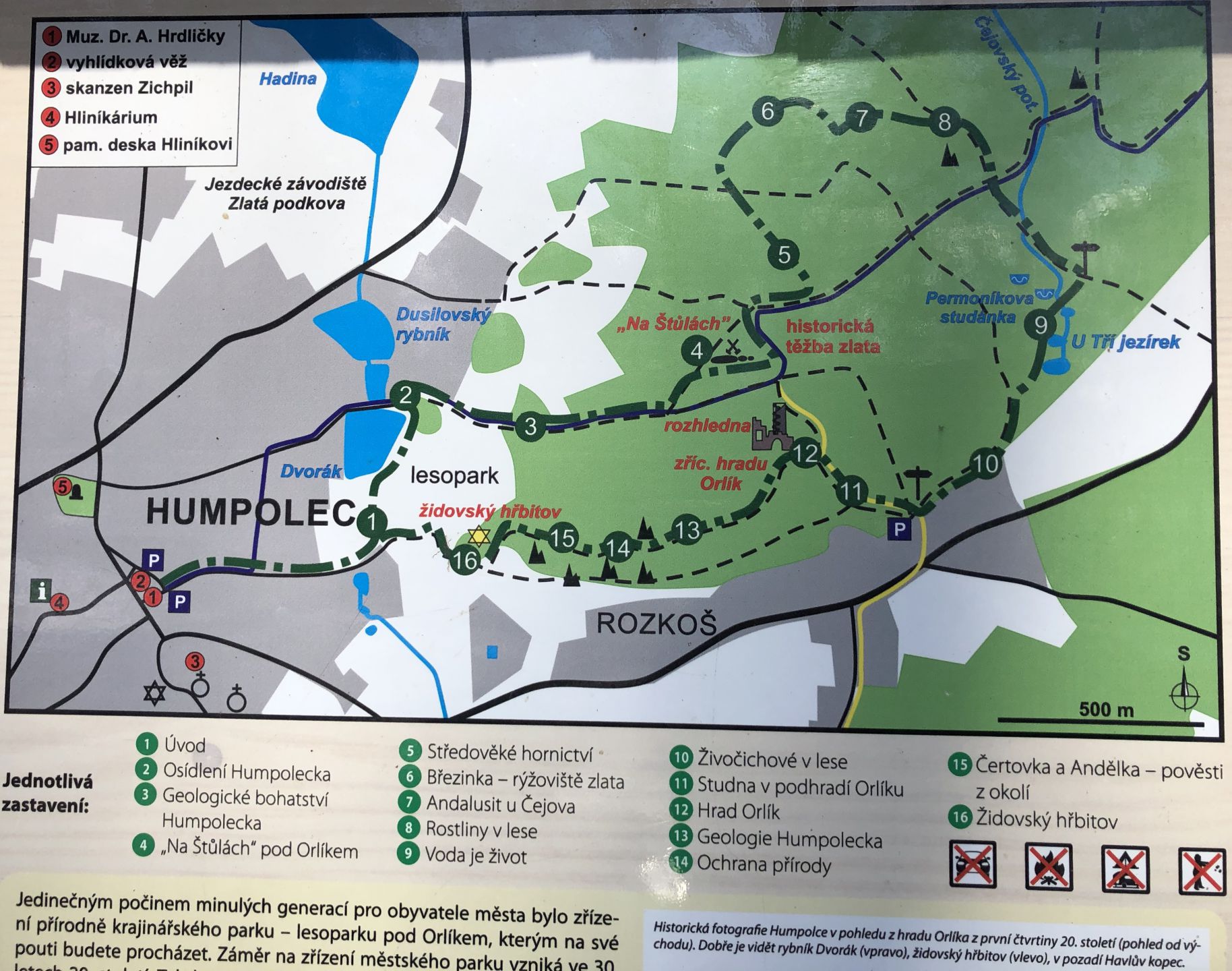 Stezka začíná v nové části lesoparku u ZŠ Podhrad a je připravena jako okružní v celkové délce cca 7 km. V současné době je na její trase rozmístěno 16 panelů na jednotlivých stanovištích, které můžete na trase navštívit. Můžete se na ni také napojit při cestě po modré turistické značce z Lipnice nad Sázavou a při cestě z obce Rozkoš na hrad Orlík po žluté turistické značce. Děti jistě ocení interaktivní tabule se zábavnými úkoly, které je hravou formou seznamují s místní flórou i faunou.