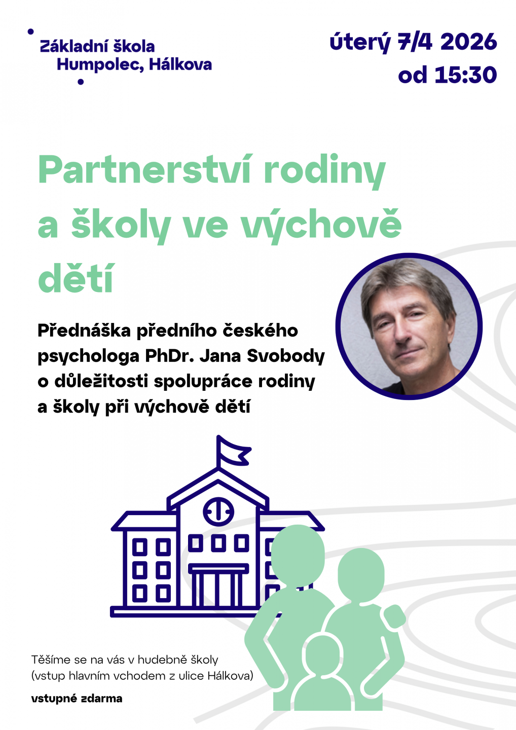 Zveme vás na přednášku o důležitosti spolupráce rodiny a školy při výchově dětí.