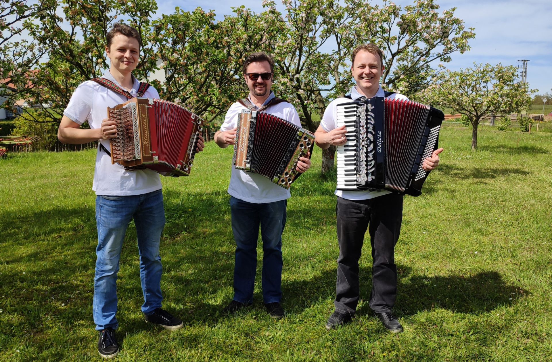 Harmonikářské trio z blízkého okolí Humpolce, složené z bratrů Veselých a Tomáše Hrůzy.