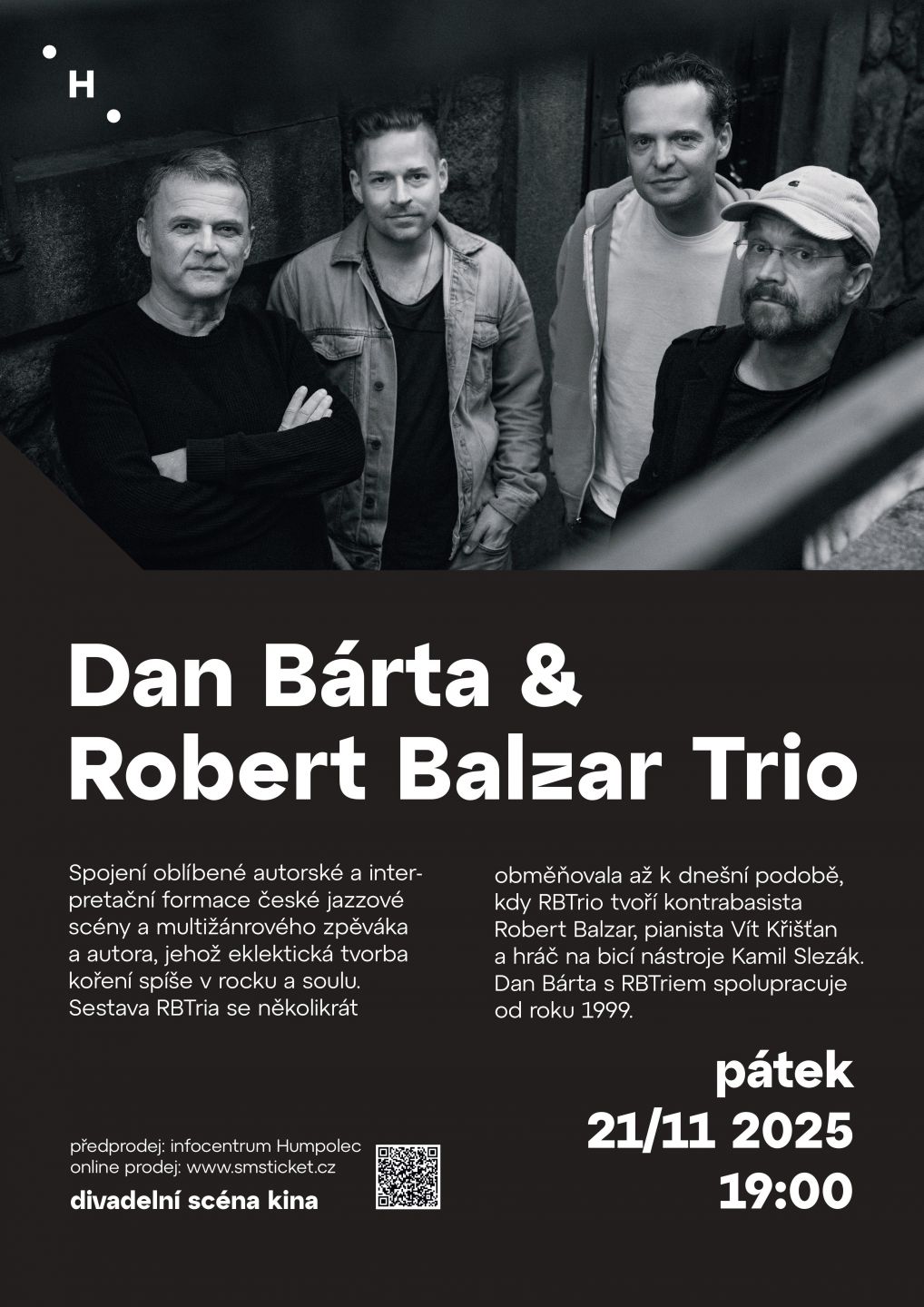 Dan Bárta & Robert Balzar Trio jsou spojením vysoce hodnocené a oblíbené autorské a interpretační formace české jazzové scény a multižánrového zpěváka a autora, jehož eklektická tvorba koření spíše v rocku a soulu, jakkoli je její zařazení sem jen orientační vzhledem k těžišti textové tvorby v mateřském jazyce, češtině. Stylově patří toto spojení někam na pomezí jazzu a popu, jejich společná tvorba je navíc částečně konceptuální a syntetická. Sestava RBTria se několikrát obměňovala až k dnešní podobě, kdy RBTrio tvoří kontrabasista Robert Balzar, pianista Vít Křišťan a hráč na bicí nástroje Kamil Slezák. Dan Bárta s RBTriem spolupracuje od roku 1999, jejich dílo i oni sami byli mnohokrát oceněni výročními hudebními cenami, Czech Music Awards, jak v žánrových, tak v hlavních kategoriích. Jejich první společná deska, Theyories, vyšla v roce 2010, následovala živá nahrávka Jazz in Box v roce 2015, pořízená v Düsseldorfu. Kromě své domoviny vystupovali úspěšně v řadě evropských zemí.