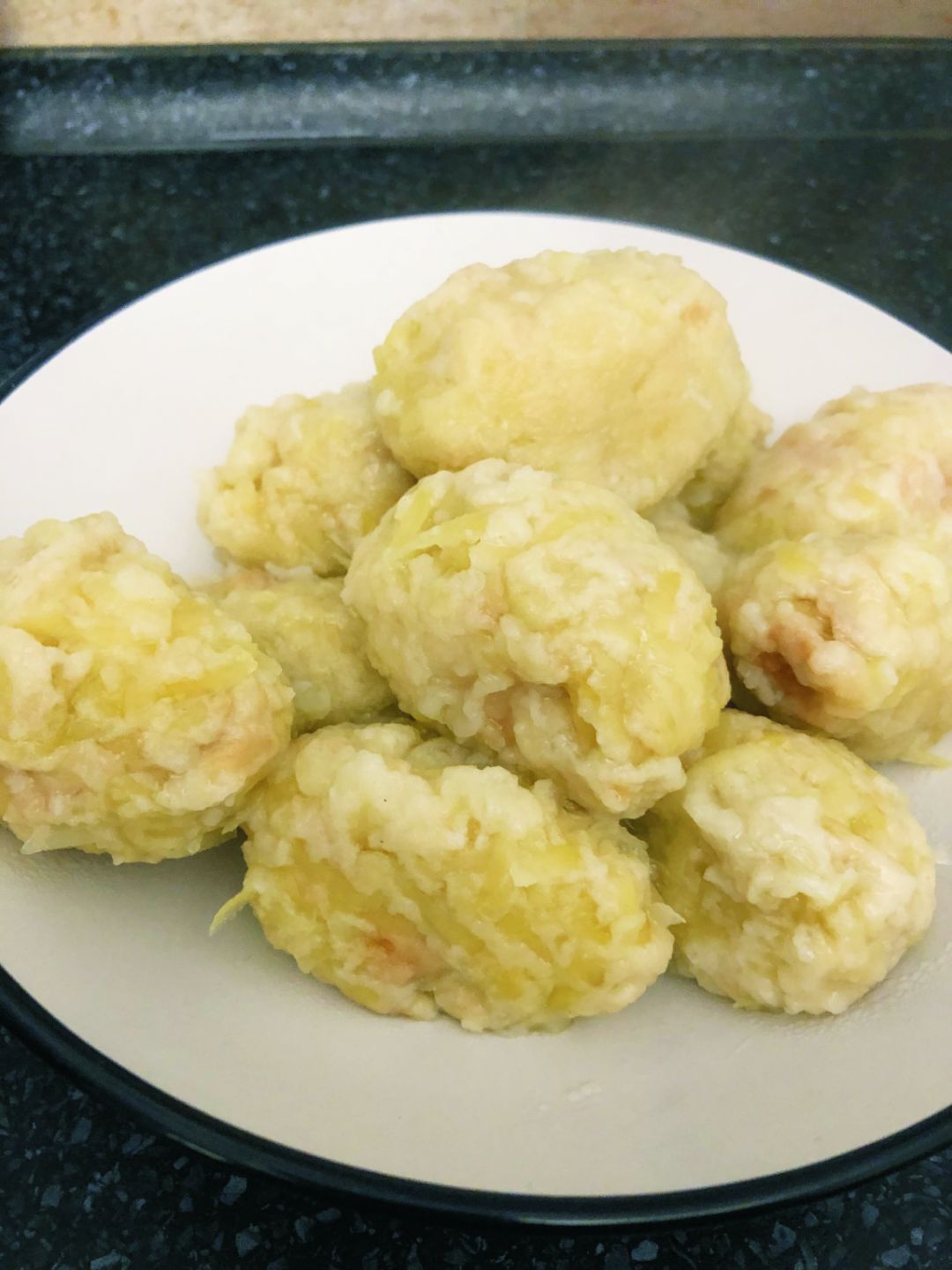 Na pomoučněném vále vytvarujeme malé knedlíčky. Vkládáme je do vroucí osolené vody a vaříme je asi 20 minut.