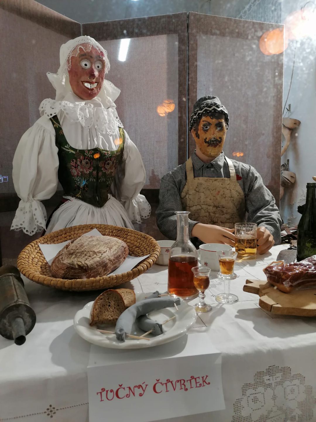 Pamatujete si na loňskou výstavku masopustních masek v oknech muzea a infocentra? Letos už se uskuteční klasický průvod městem, ale za muzejními okny budete moci znovu spatřit několik masek a ve vitríně na plakáty vedle muzea si opět přečíst o významu, zvycích a tradicích masopustu. Níže foto z minulého roku.