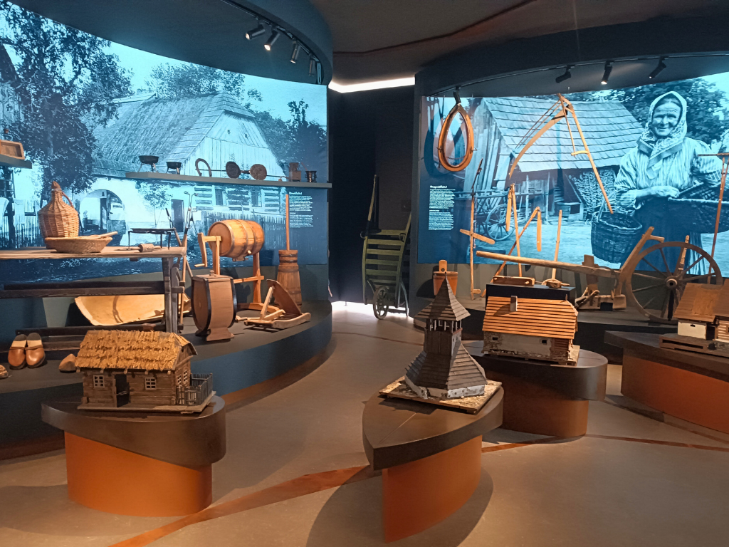 Expozice umístěná v celém druhém patře našeho muzea představuje prostředí tradiční venkovské světnice, ukázky hospodářského vybavení, lidových oděvů i modely staveb typických pro zdejší kraj. Soukenictví a lnářství, které k regionu neodmyslitelně patřily, představuje také krátký animovaný film promítaný v malém průchozím „sálku“, jenž symbolicky odděluje venkovskou a městskou část expozice.