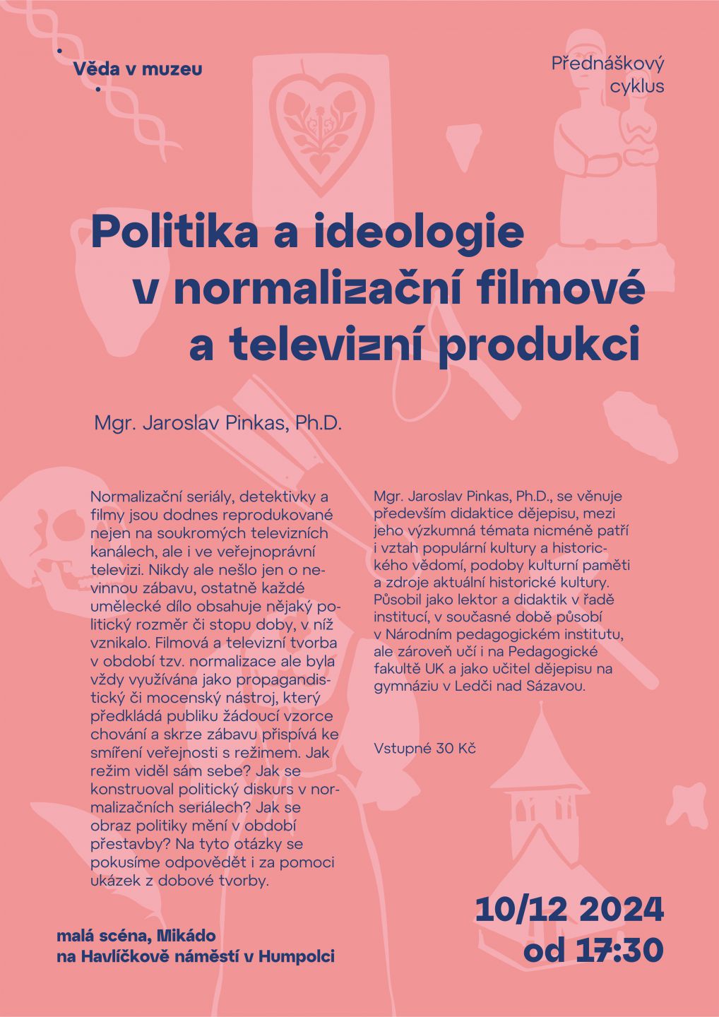 Co se dozvíte? Jak umělecká díla obsahují nějaký politický rozměr či stopu doby, v níž vznikala. Jak byla filmová a televizní tvorba v období tzv. normalizace využívána jako propagandistický či mocenský nástroj. Jak se skrze zábavu předkládaly publiku žádoucí vzorce ke smíření veřejnosti s režimem.